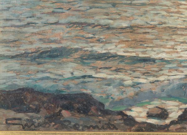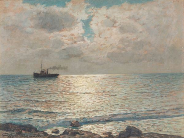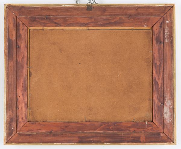 Dipinto olio su tela raffigurante "MARINA CON BARCA". Firmato in basso a sinistra. In cornice.