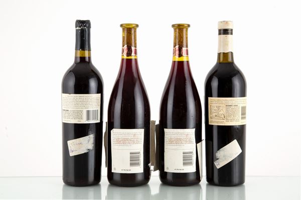 Quattro bottiglie di vini californiani di cui una di Charles Krug Napa Vallery Cabernet Sauvignon 1996, una di Buena Vista Cabernet Sauvignon 1996 e due di Robert Mondavi Winery Pinot Noir 1997 (difetti alle etichette).