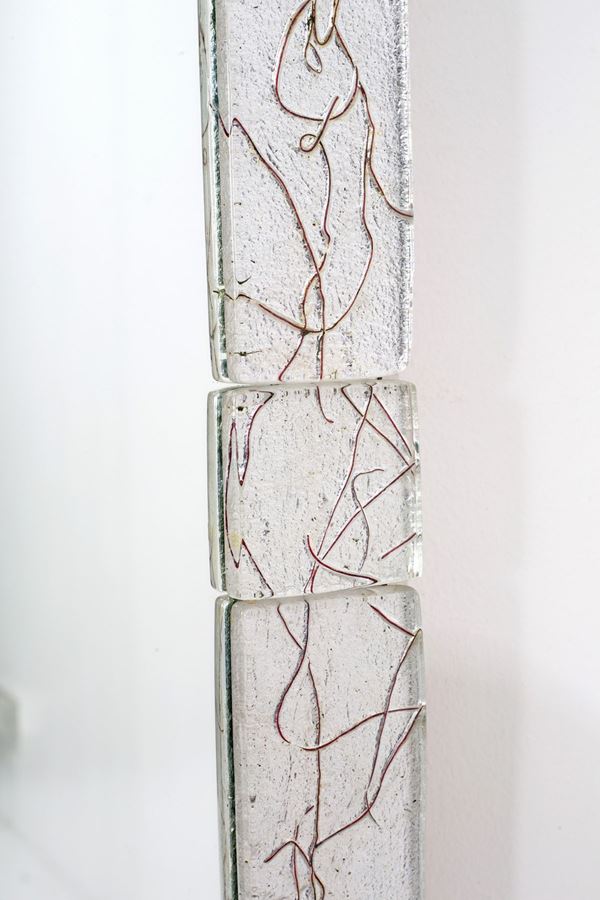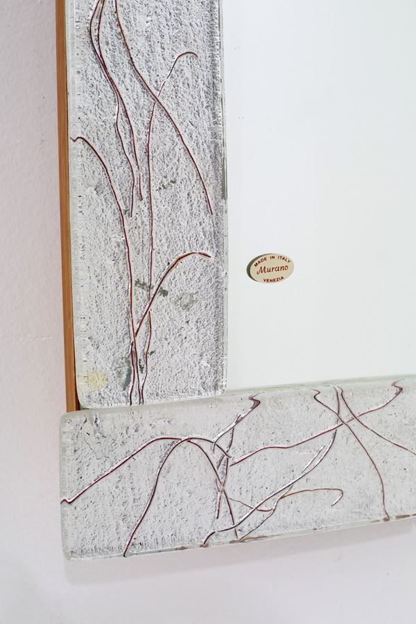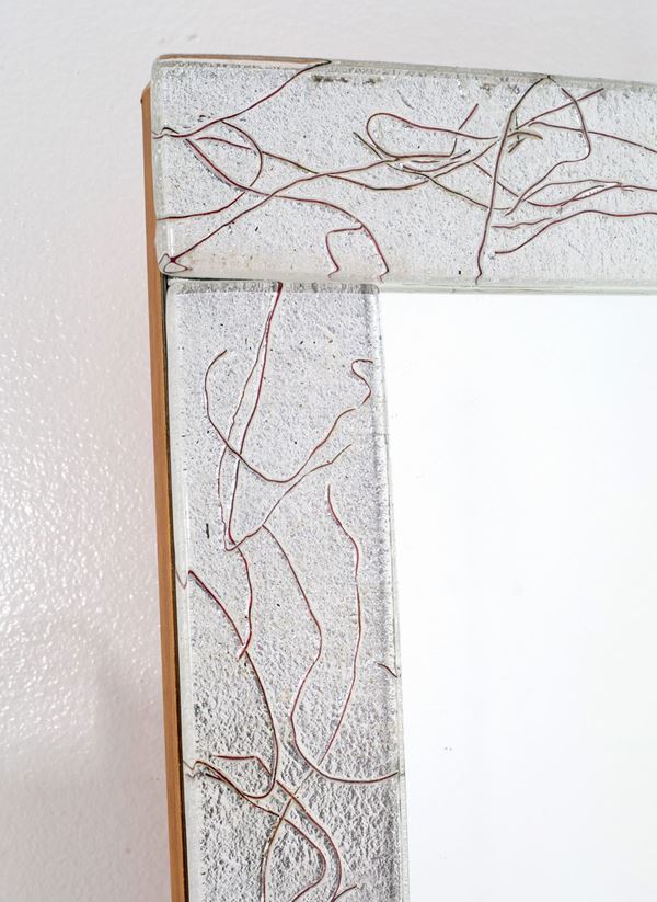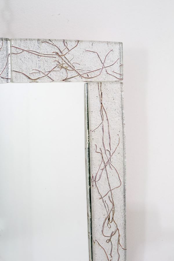 Specchio rettangolare con cornice in vetro a fondo argentato con decori. XX secolo.