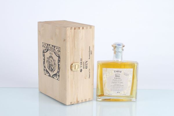 Una bottiglia di Tabai Premium Gin Liquorice. Platinum Edition. Cofanetto originale.