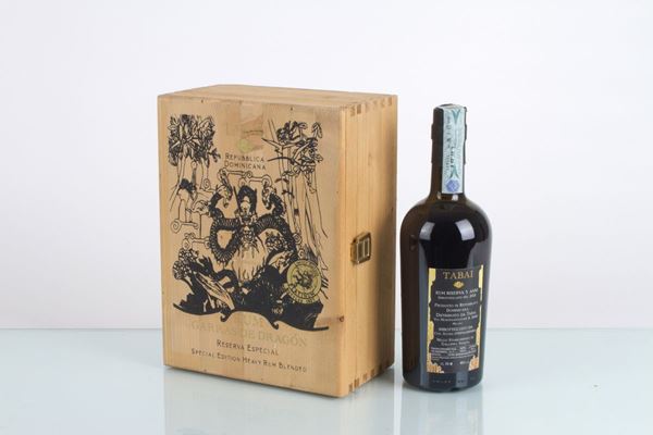 Una bottiglia di Tabai Rum Garras de Dragón, Reserva Especial, Special Edition Heavy Rum Blended. Limited Edition. Rum riserva 5 anni, imbottigliato nel 2021. Cofanetto originale.