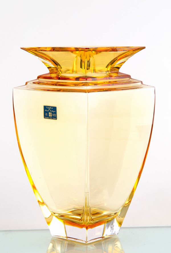 Vaso sfaccettato color ambra. CRISTALLERIE DE HAUTE BRETAGNE