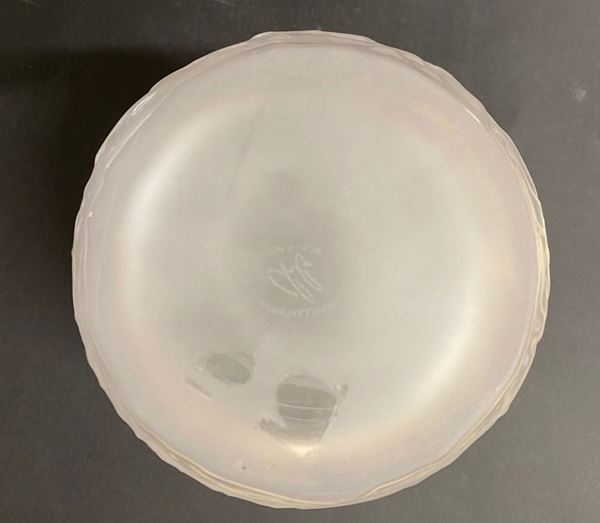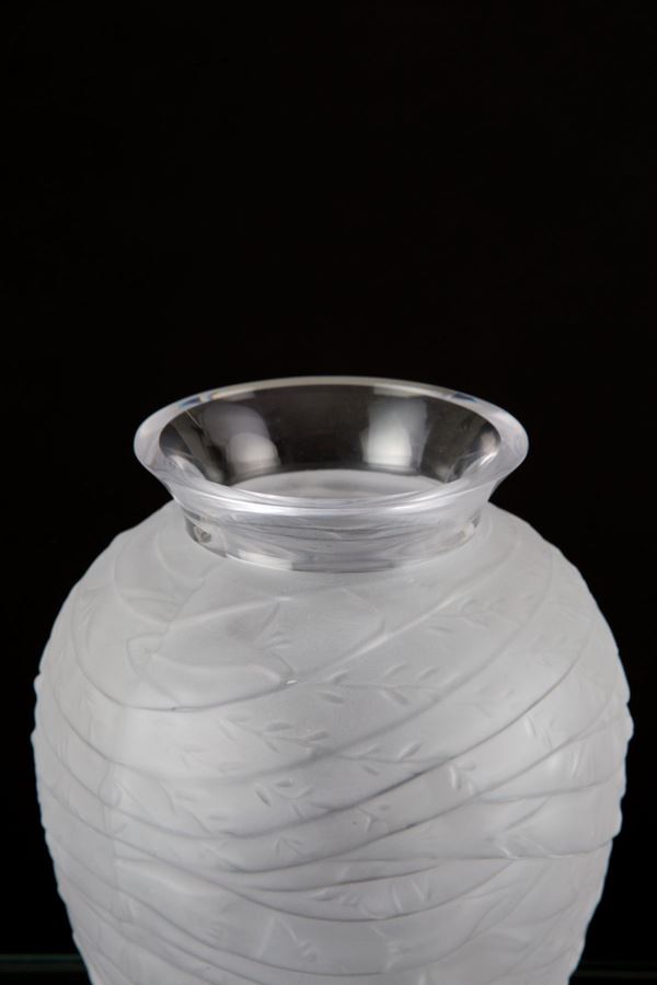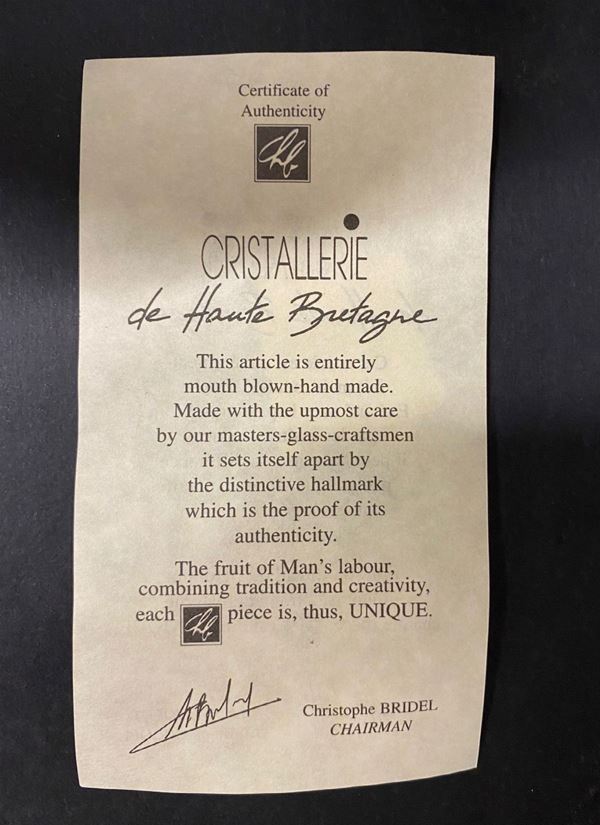 Vaso a bolla in vetro soffiato trasparente satinato. Manifattura CRISTALLERIE DE HAUTE BRETAGNE. Marchio all'acido sul fondo. Con certificato di autenticità.