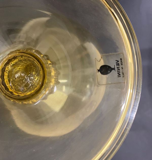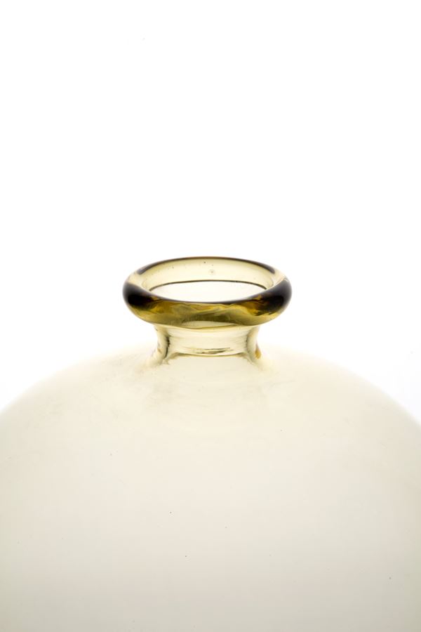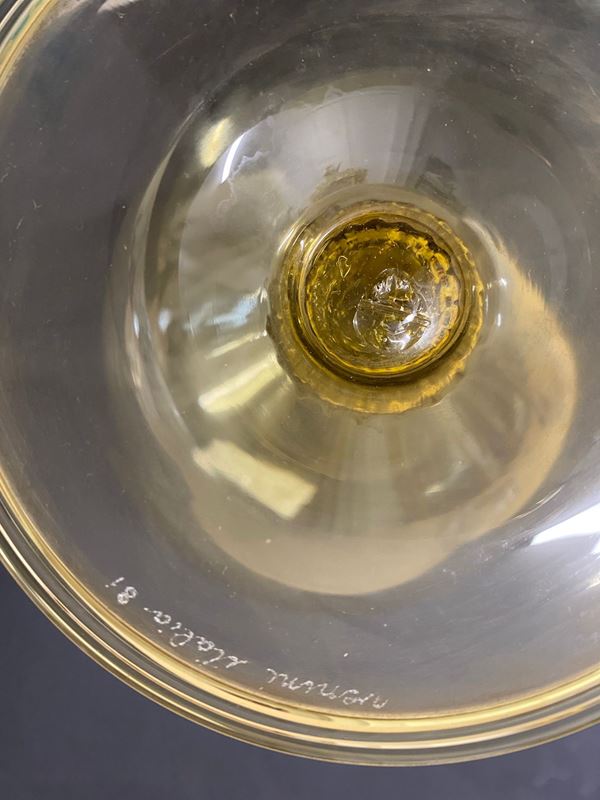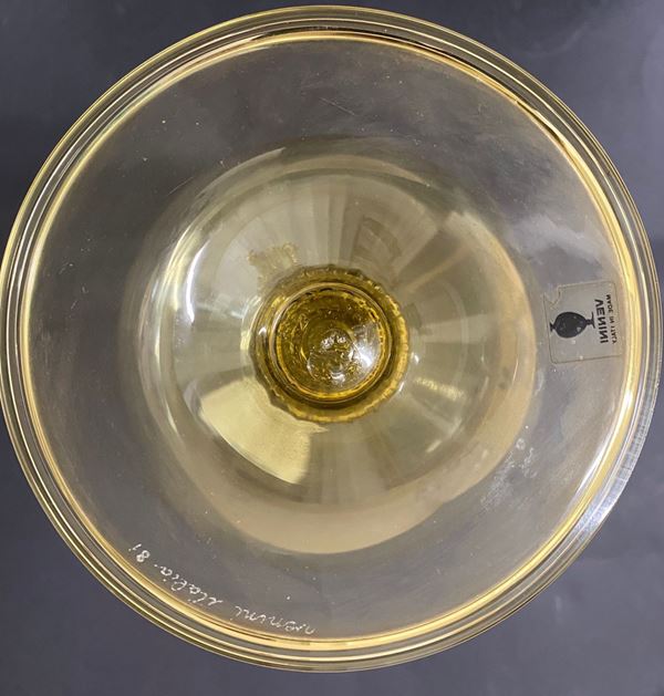 Vaso modello Veronese in vetro soffiato color ambra. Firmato VENINI, Italia 1981 sul fondo. Con etichetta del produttore alla base.