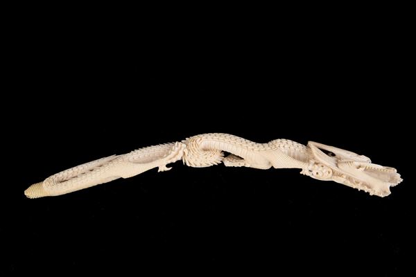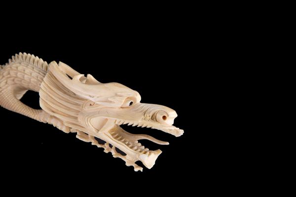 Scultura in dente di facocero lavorato raffigurante "DRAGONE". Cina. Inizi XX secolo
