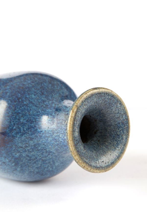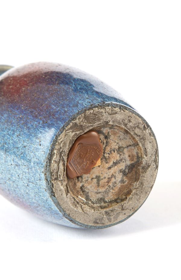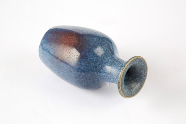 Vasetto in ceramica invetriata nei toni del blu. Con sigillo in ceralacca sul fondo. Cina. XIX secolo.