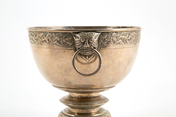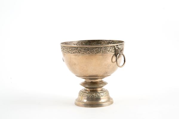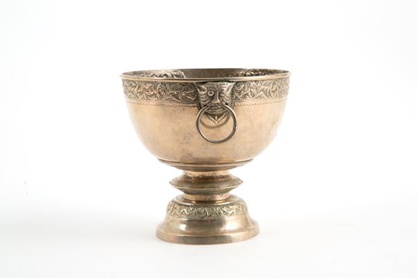 Coppa lavamani in metallo argentato finemente sbalzato e cesellato. Indocina. XIX secolo.