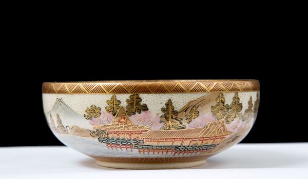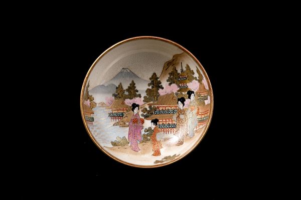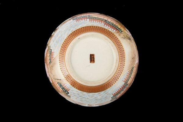 Coppetta in porcellana Satsuma dipinta con decorazioni in oro zecchino. Marcata sotto la base. Giappone. Fine XIX secolo.