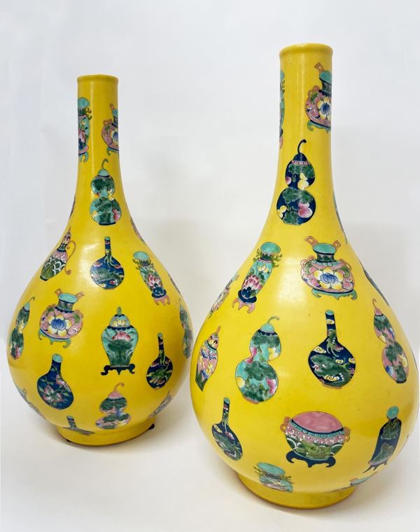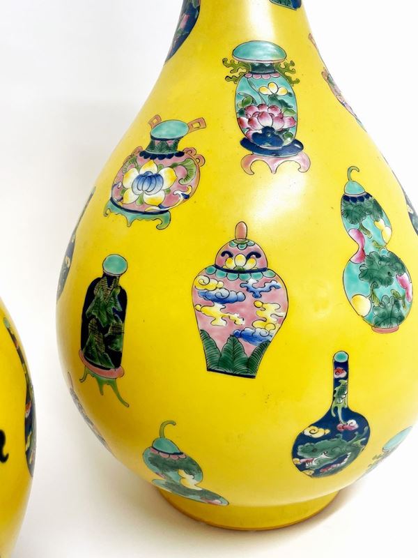 Coppia di vasi a fondo giallo