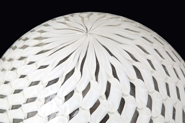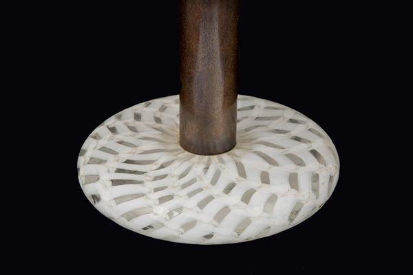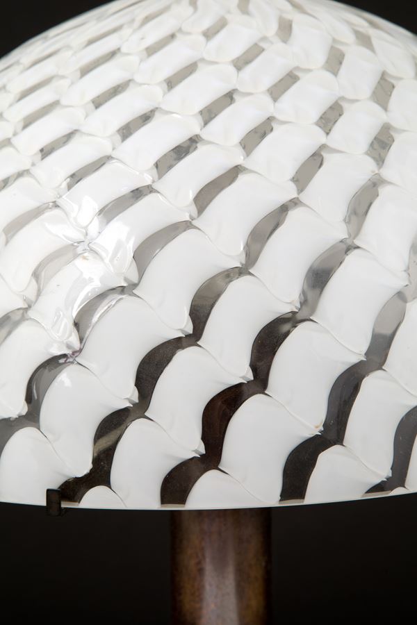 Lampada da tavolo a fungo in vetro di Murano e ottone brunito. Produzione MAZZEGA. Anni '70-'80. Lieve sbeccatura sul paralume.