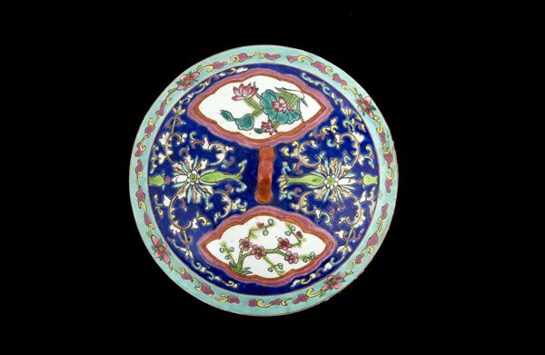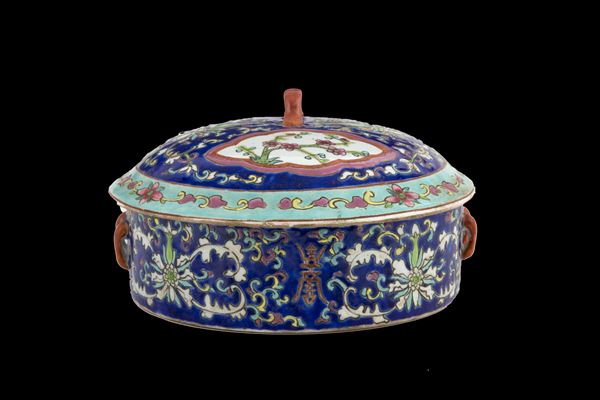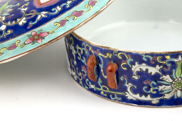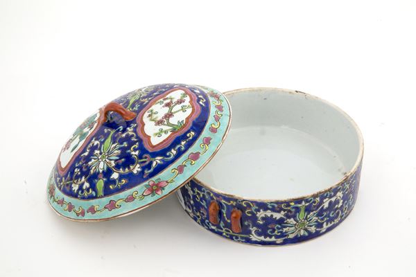 Pentola con coperchio in porcellana dipinta. Cina. Fine XIX-inizi XX secolo.
