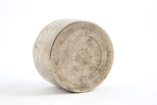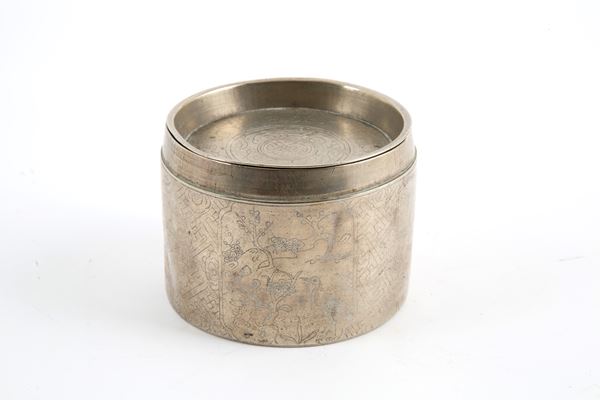 Scatola porta noci di Betel in metallo argentato inciso. Cina. XIX secolo.