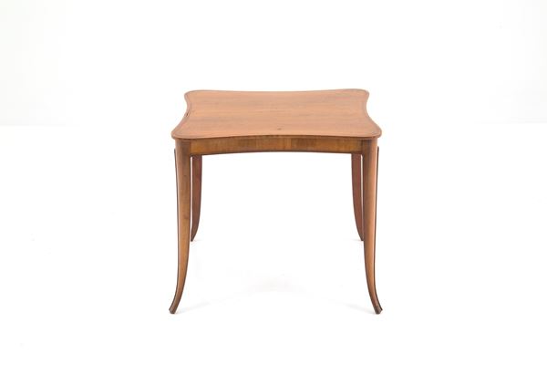 Tavolino in legno con piano sagomato. Anni '50. Lievi difetti.