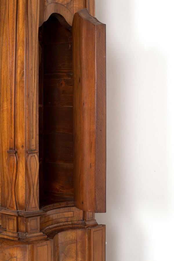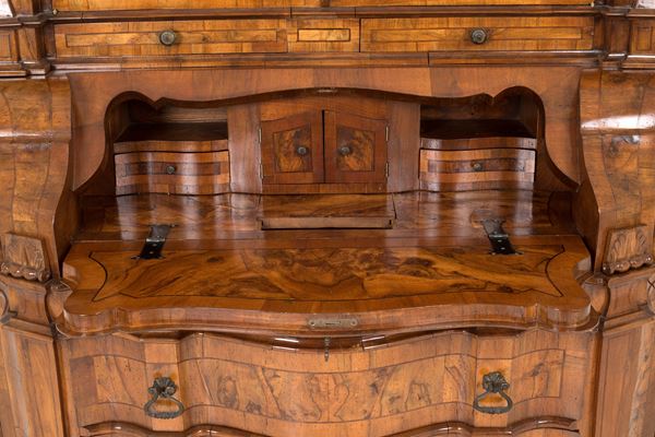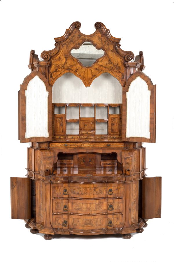 Trumeau in stile Ca' Rezzonico lastronato in radica di noce. Inizi XX secolo.