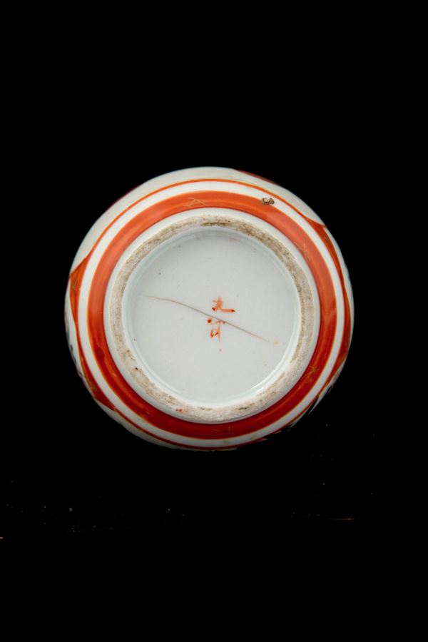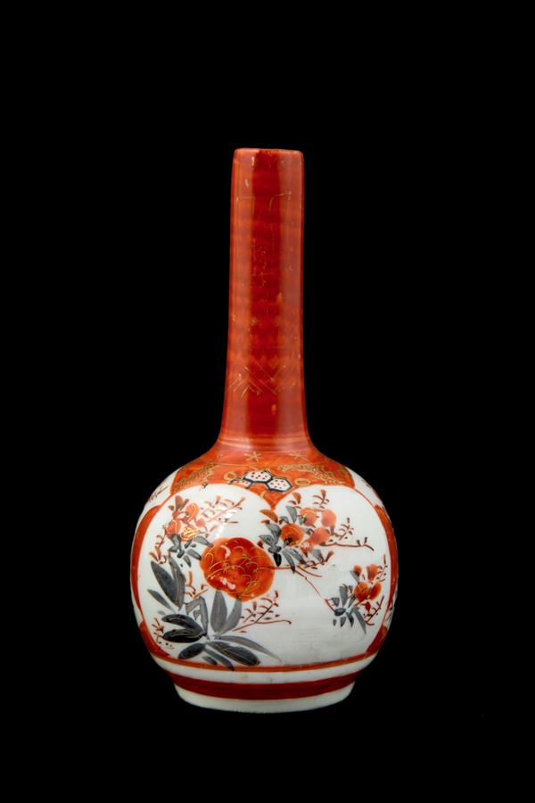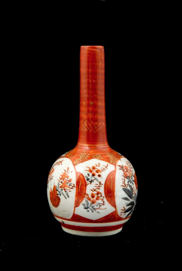 Vasetto a bottiglia in porcellana Imari dipinta. Marcato sul fondo. Giappone. Fine XIX secolo. Felatura sul fondo.