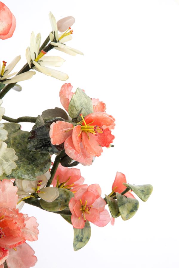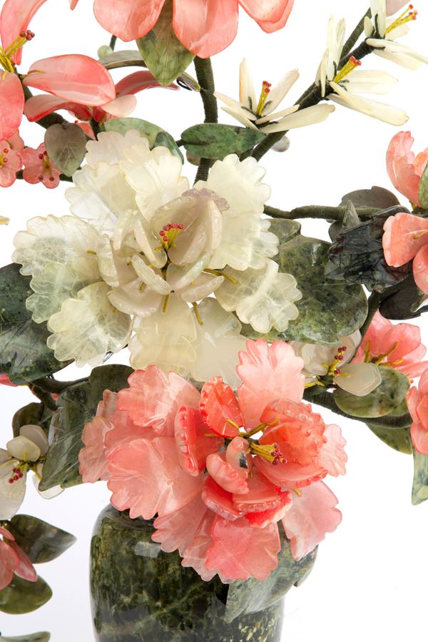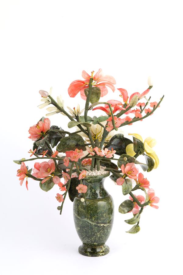 Vaso in marmo con fiori in giade varie. Cina.