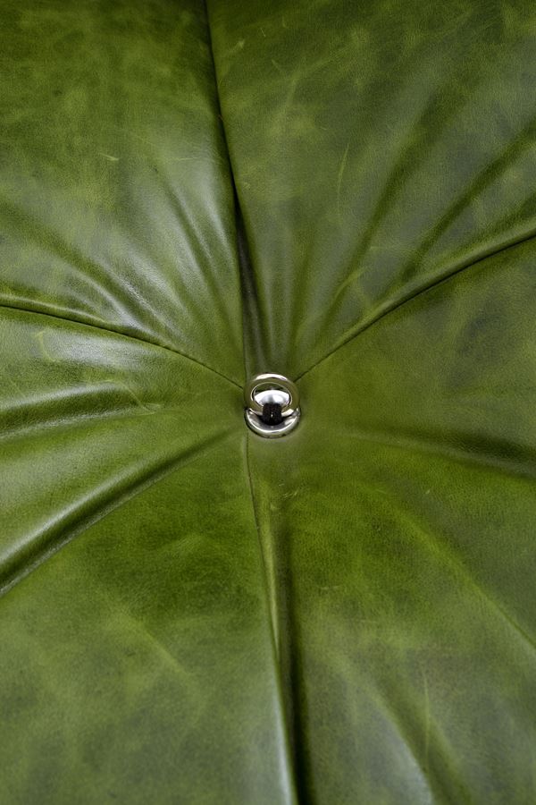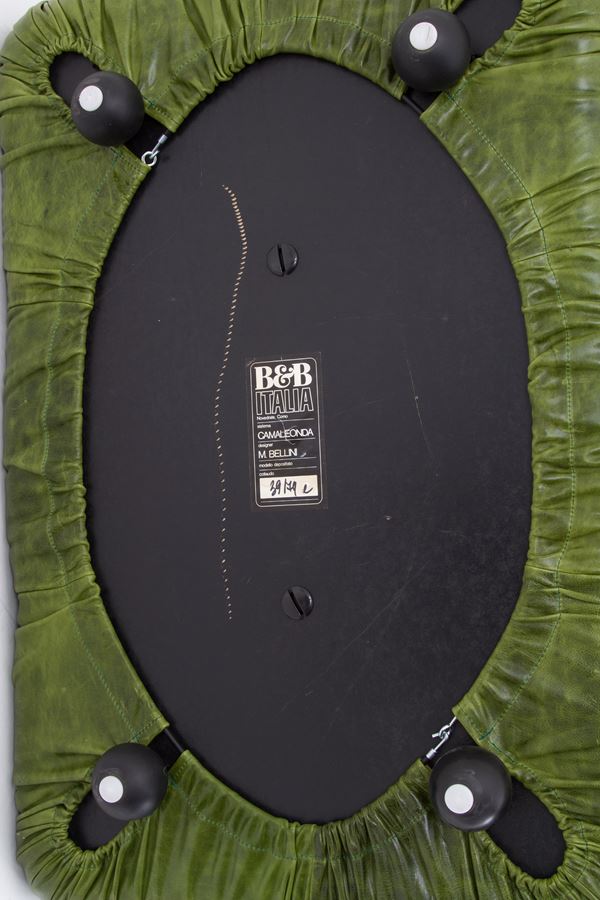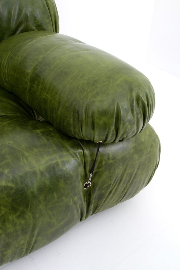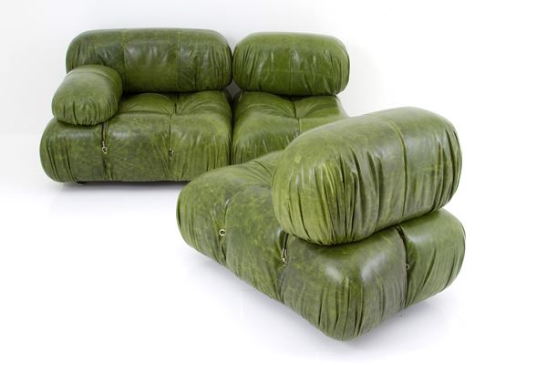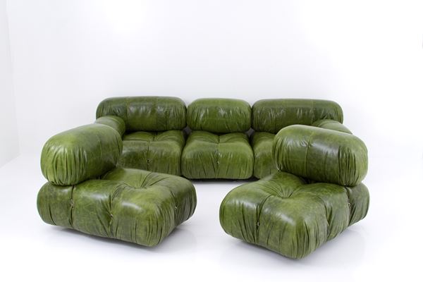 Divano mod. Camaleonda, composto da cinque moduli in legno con rivestimento in pelle color verde e tiranti in acciaio. Con etichetta del produttore sotto ogni seduta. Anni '70. Lievi segni di usura del tempo.