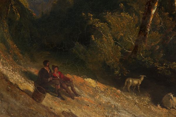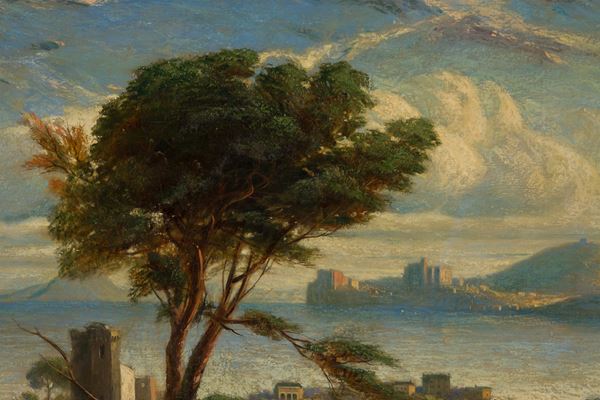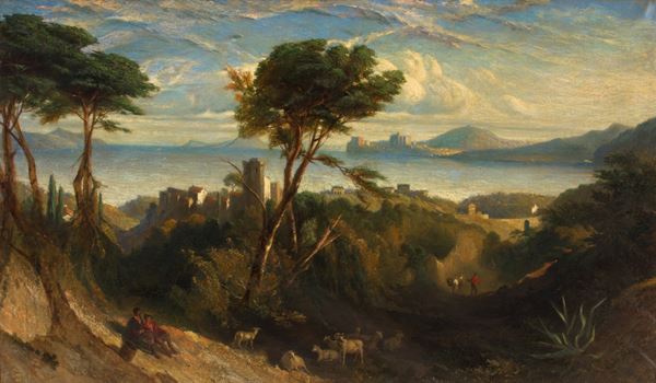Dipinto "COSTIERA NAPOLETANA CON PERSONAGGI E ANIMALI"