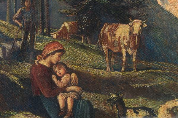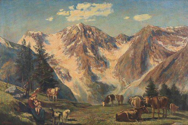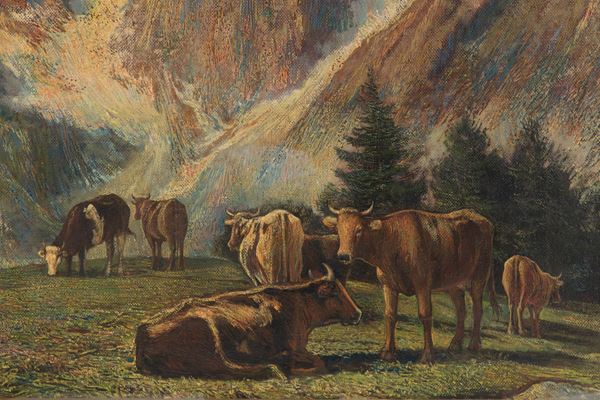 Dipinto olio su tela intitolato "PASCOLO". Firmato in basso a sinistra. In cornice.