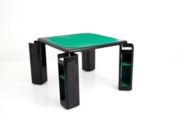 Tavolo da gioco con gambe rotanti con ripiani. Produzione POZZI. Anni '70. Difetti.