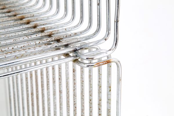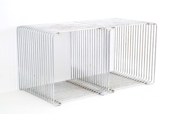 Moduli in metallo tubolare cromato componibili. Produzione FRITZ HANSEN. Anni '70-'80. Segni di usura del tempo.