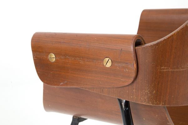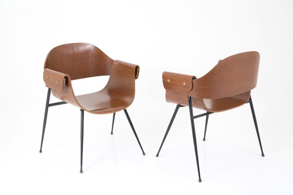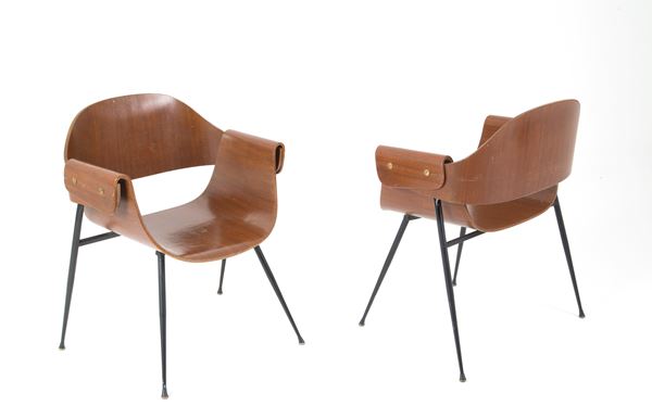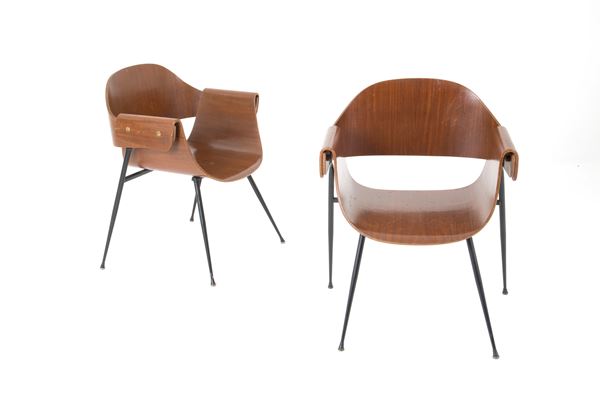 Coppia di poltrone in teak. Produzione LEGNI CURVATI. Anni '50. Difetti.