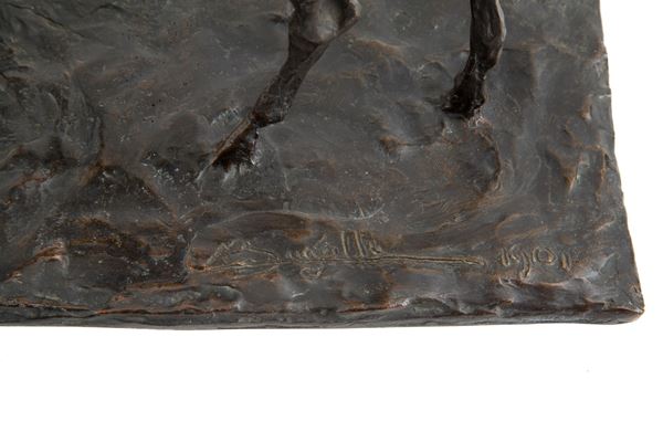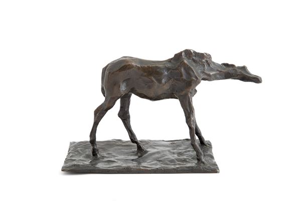 Scultura in bronzo raffigurante "CAVALLO". Firmata e datata 1901 sulla base. Una delle prime sculture in bronzo realizzate dall'artista sedicenne, prima della partenza per Parigi.