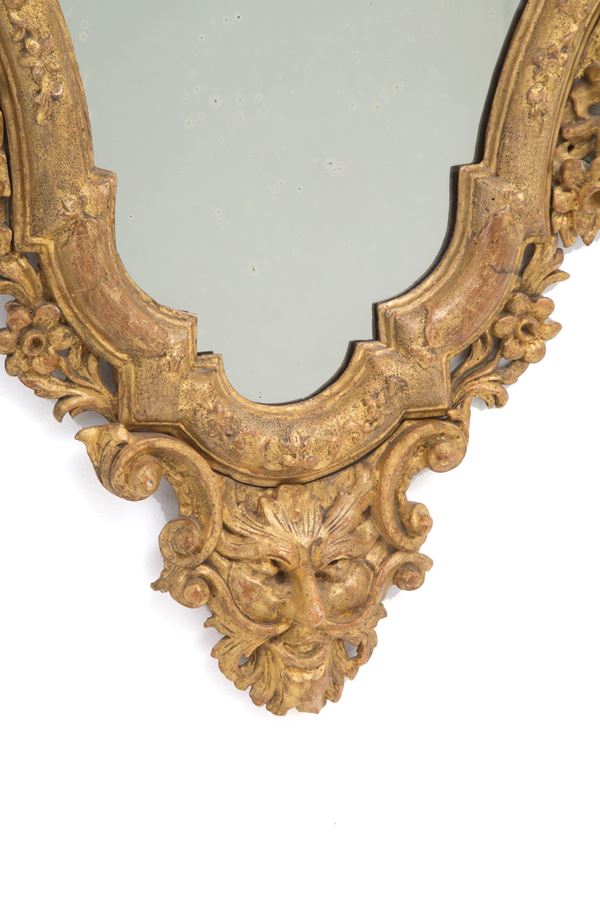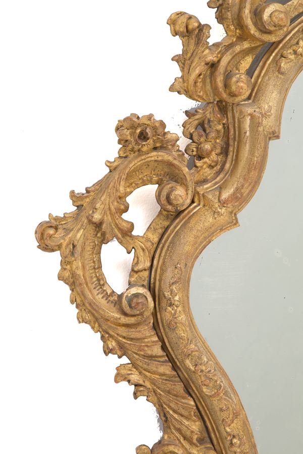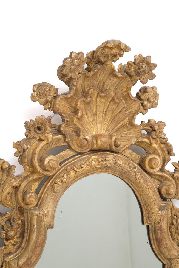Specchiera in legno intagliato e dorato. Lombardia. XVIII secolo.