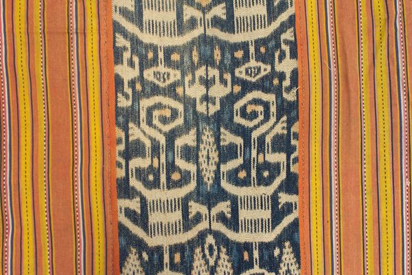Tessuto Ikat Timor. Indonesia. XX secolo. Eccellente stato di conservazione. Testate e bordi originali, senza restauri.
