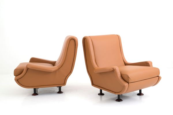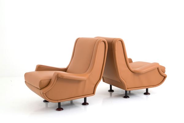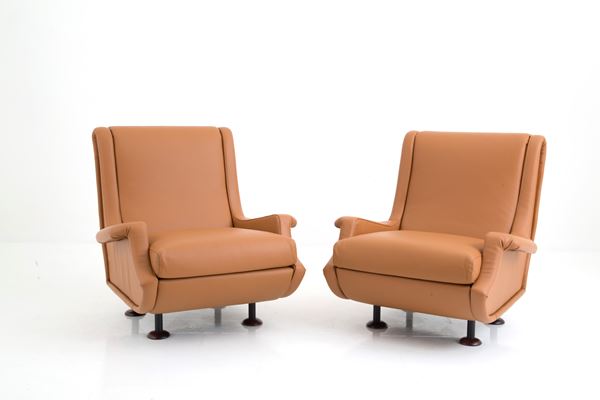 Coppia di poltrone modello Regent in pelle. Anni '60. Rifoderato.