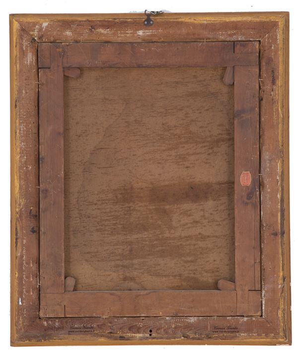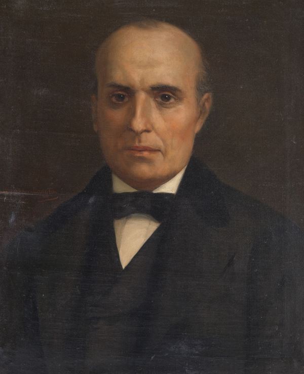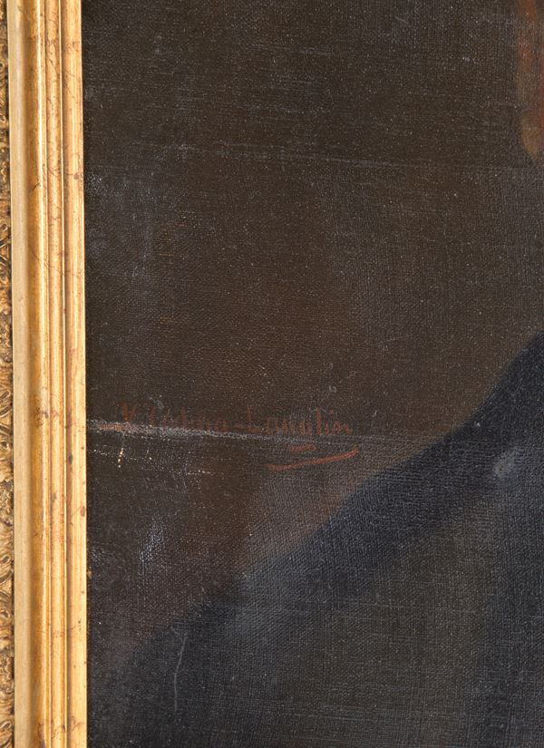 Dipinto olio su tela raffigurante "RITRATTO DI GENTILUOMO". Firmato in centro a sinistra. In cornice intagliata e dorata. Difetti.