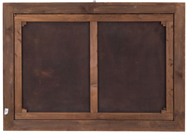 Dipinto olio su tela raffigurante "PALAZZO DUCALE CON SCORCIO DI SAN MARCO E LAGUNA". XX secolo. In cornice.