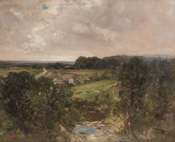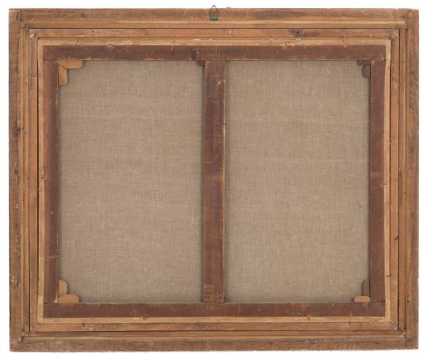 Dipinto olio su tela raffigurante ''VEDUTA CAMPESTRE''. XIX secolo. In cornice intagliata e dorata.