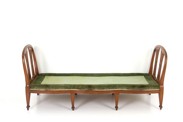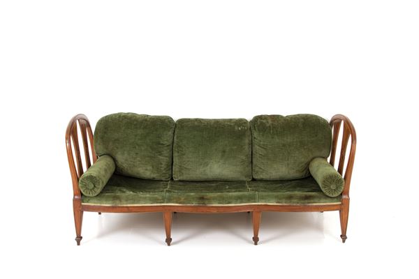 Divano in noce con otte gambe rastremate. XVIII secolo. Lievi difetti.