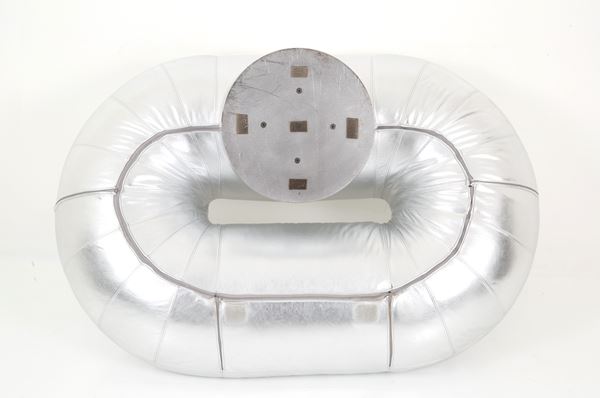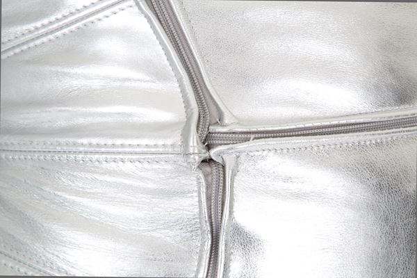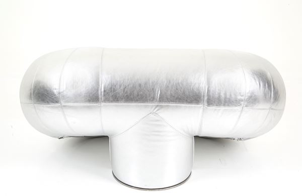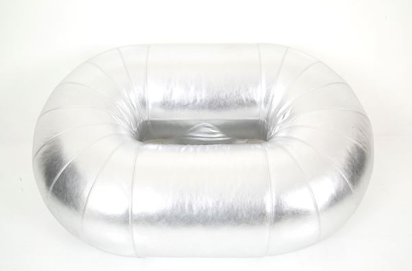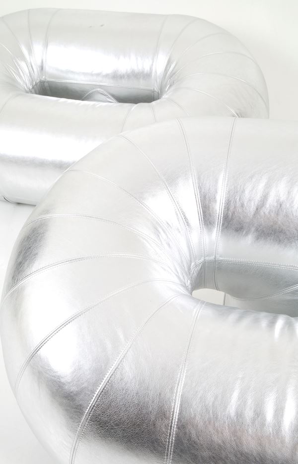 Due rare poltrone Zappelin con struttura tubolare rivestita in pelle laminata argento. Anni '70. Produzione VELDA. Belgio. Anni ’70.
