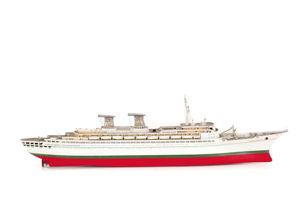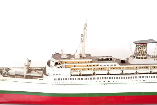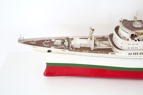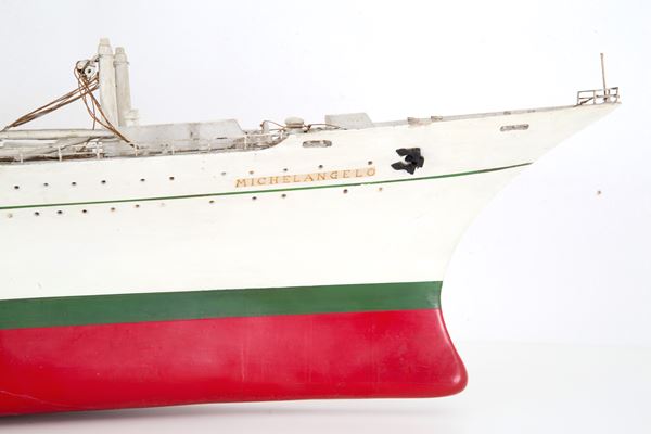 Modellino di nave da crociera Michelangelo in legno dipinto e laccato. XX secolo. Difetti.
