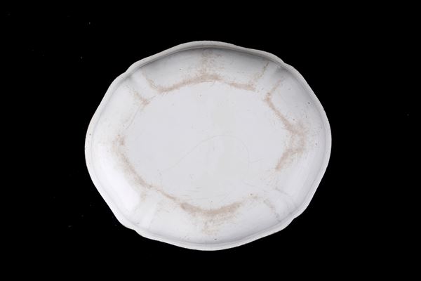 Piatto da portata in maiolica con decori floreali. XIX secolo. Difetti e rotture.