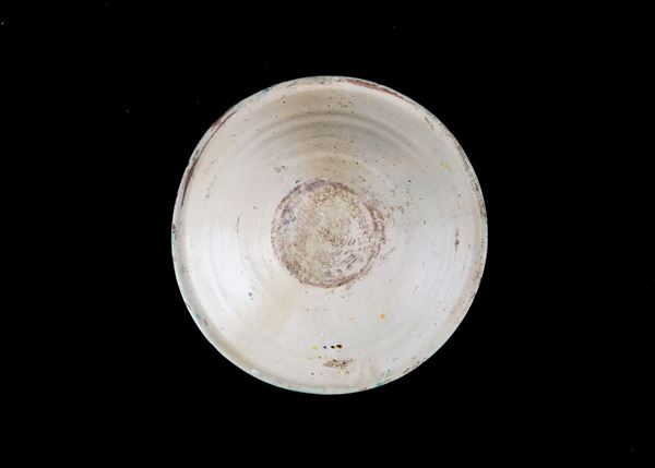 Piatto in maiolica policroma con cavaliere al centro. Montelupo. XVIII secolo. Lievi difetti.
