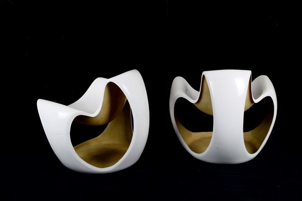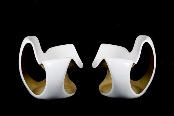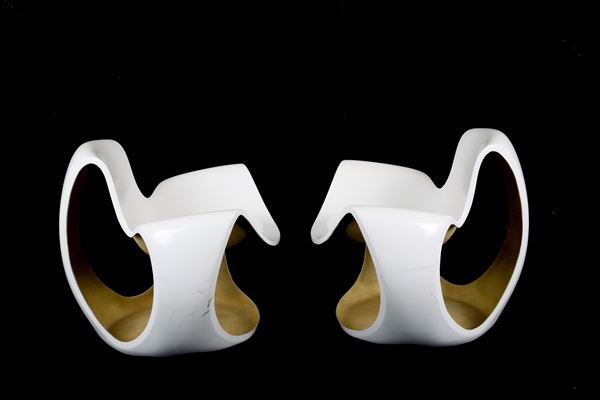Coppia di poltrone Albatros in resina poliestere e fibra di vetro. Produzione AIRBONE. Anni '70. Segni di usura del tempo.