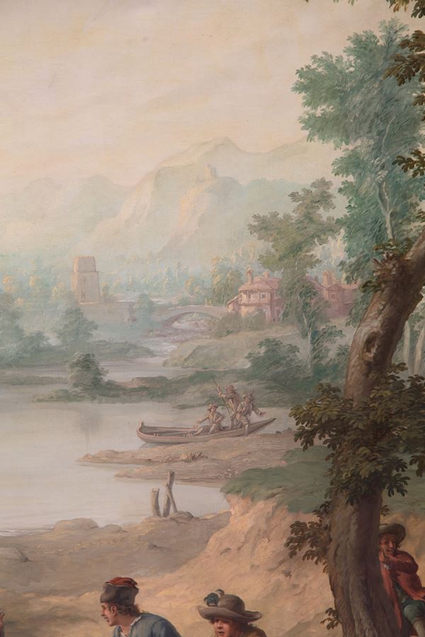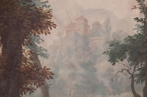 Trittico "PAESAGGIO CON SCENA DI CACCIA ALLA LEPRE"