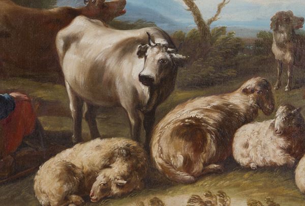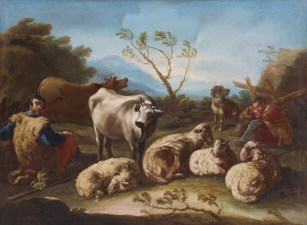 Dipinto "PASTORI A RIPOSO CON ARMENTI".