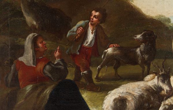 Dipinto "PASTORELLO CON CONTADINA E ARMENTI"