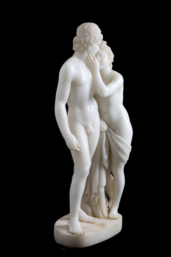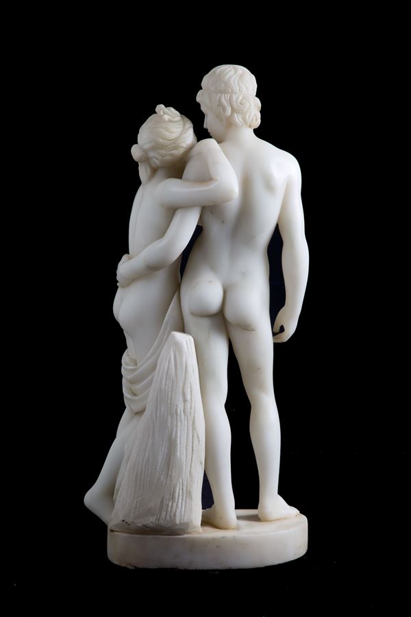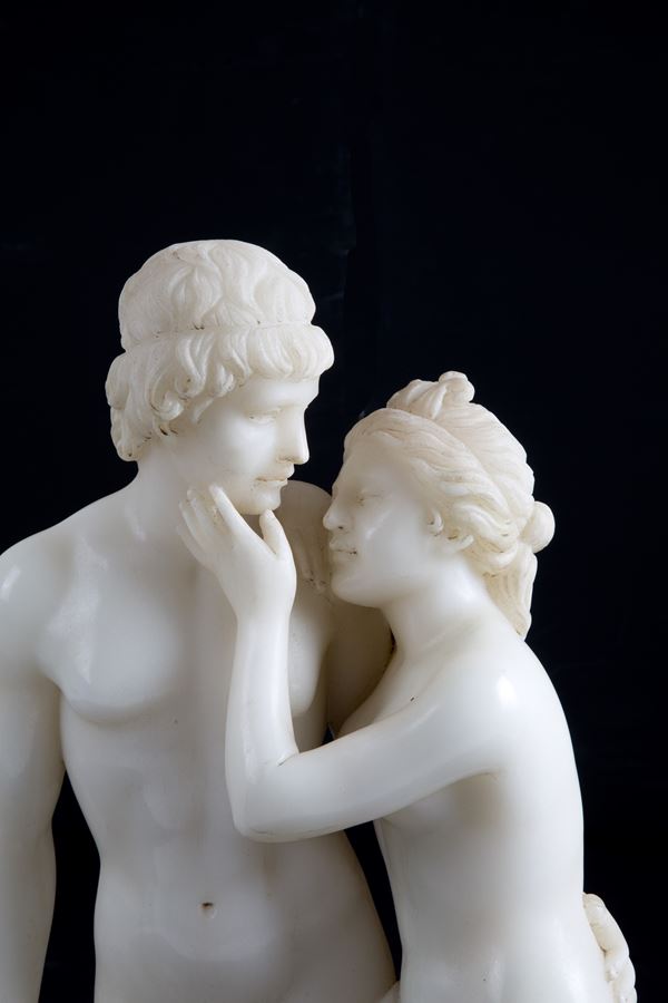 Scultura in marmo raffigurante "VENERE E ADONE". XIX secolo.