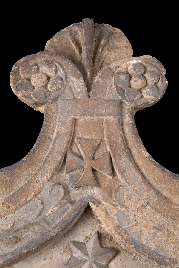 Stemma araldico in pietra. Inizi XVII secolo. Difetti e mancanze.