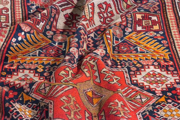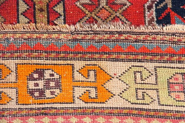 Tappeto Akstafa. Caucaso. Circa 1900. Vari piccoli vecchi interventi sul campo.