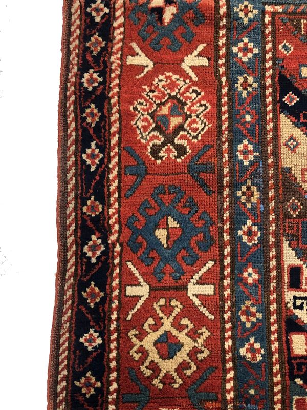 Tappeto Ghendjè. Caucaso. Seconda metà del XIX secolo. Ottimo stato di conservazione, quattro lati originali.