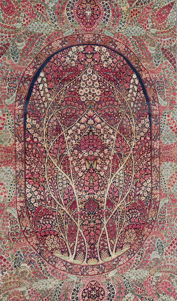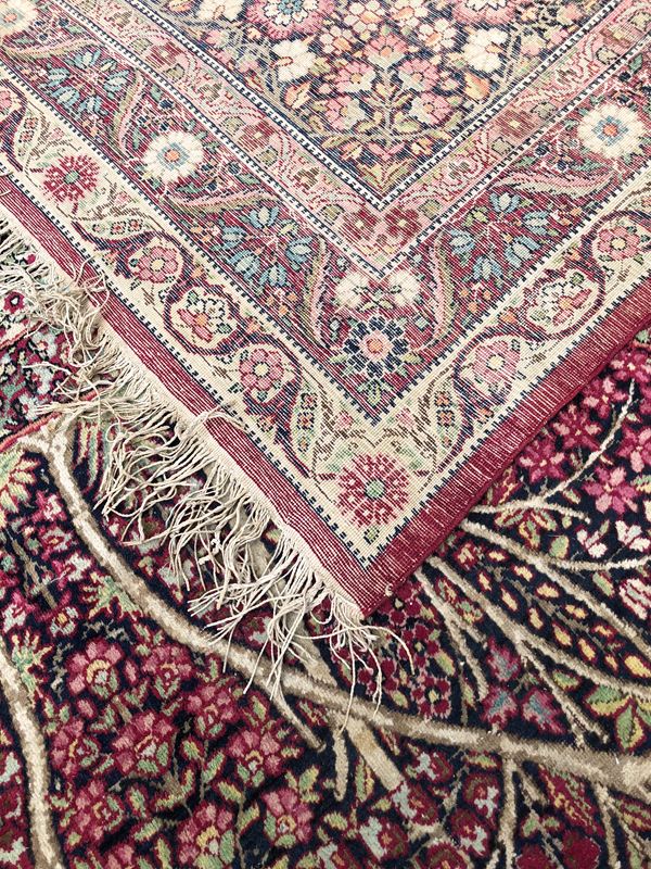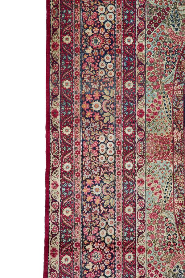 Tappeto Kirman Laver. Persia. Seconda metà del XIX secolo. Buono stato di conservazione, senza restauri, quattro lati perimetrali originali e piccoli punti sul campo leggermente consumati.