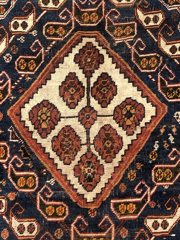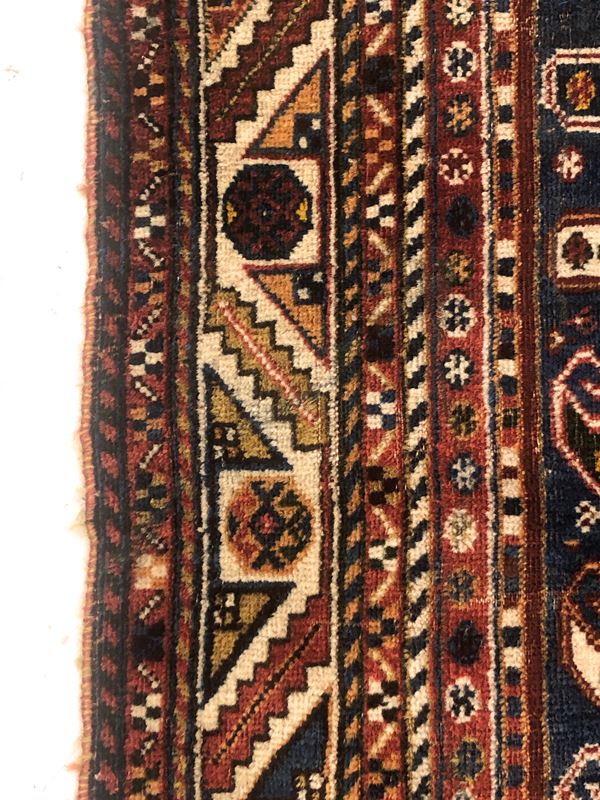 Tappeto Qashkay. Persia. Fine XIX secolo. Buono stato di conservazione, piccole aree leggermente consumate sul campo.