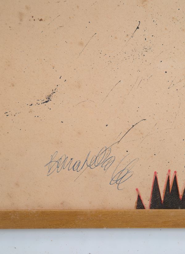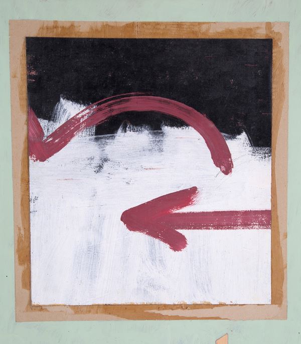 Tecnica mista su cartoncino "SENZA TITOLO". Firmata e datata '66 in basso a sinistra. In cornice. Con certificato di autenticità della Galleria d'Arte Vasco, Alassio.