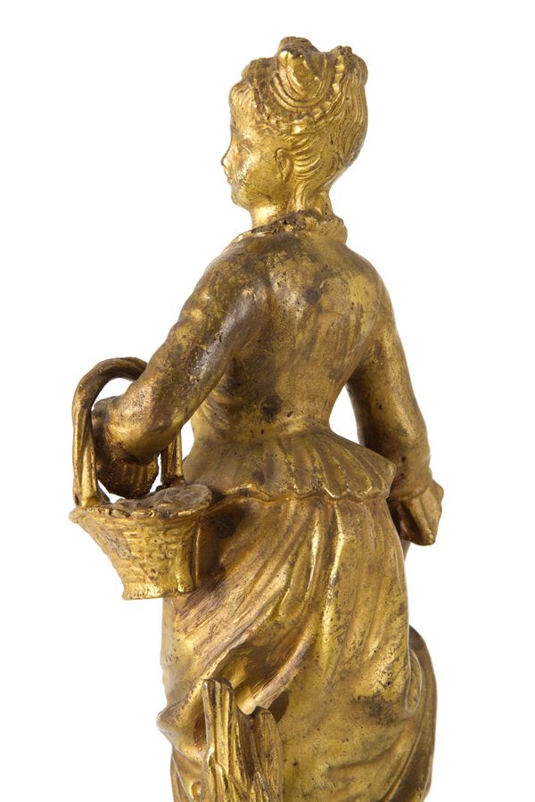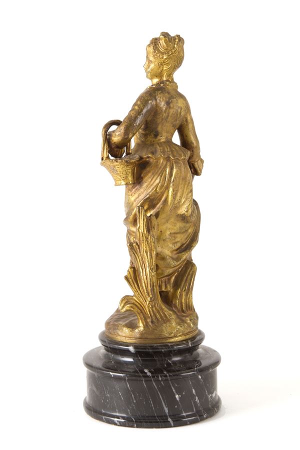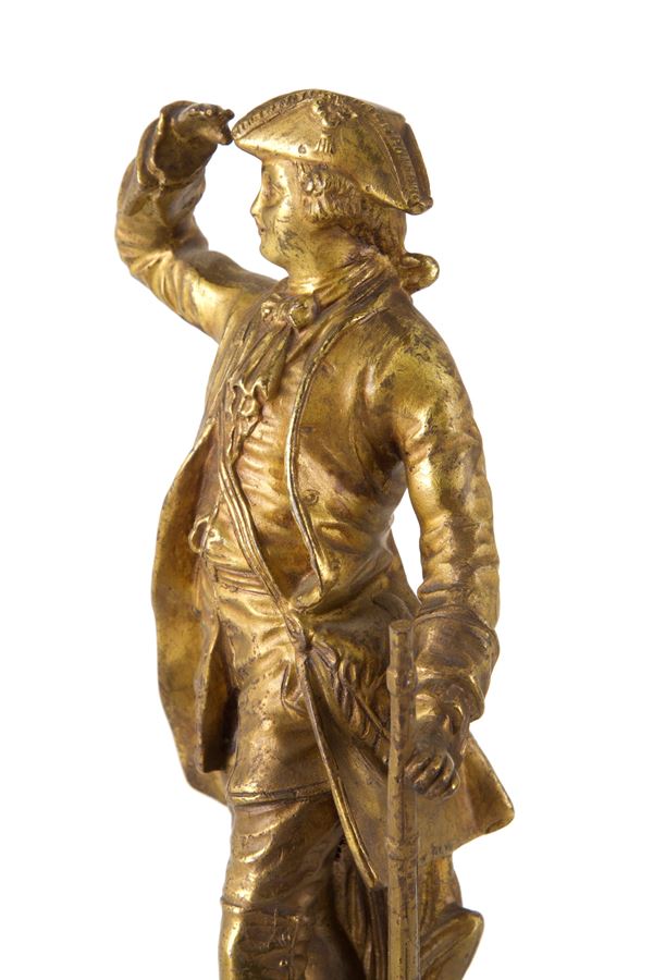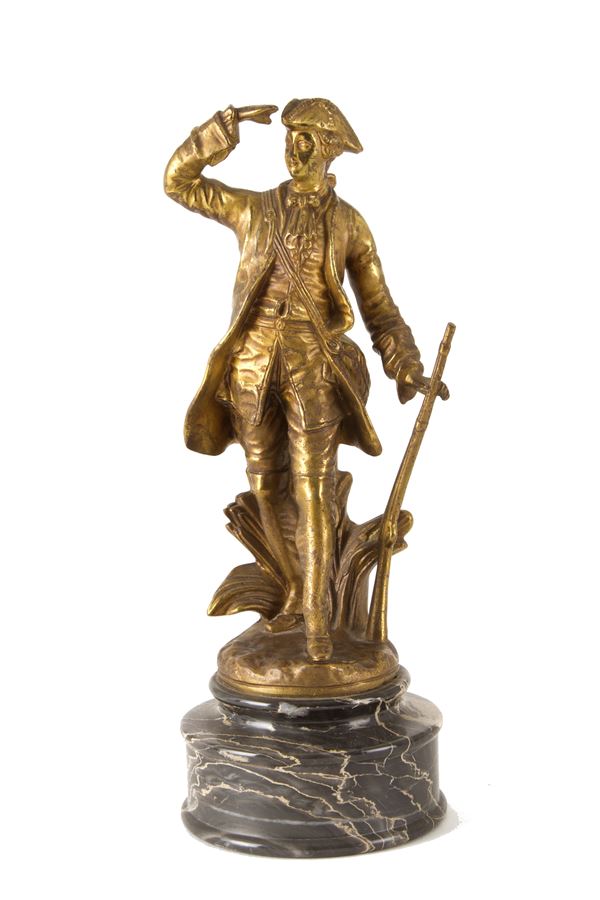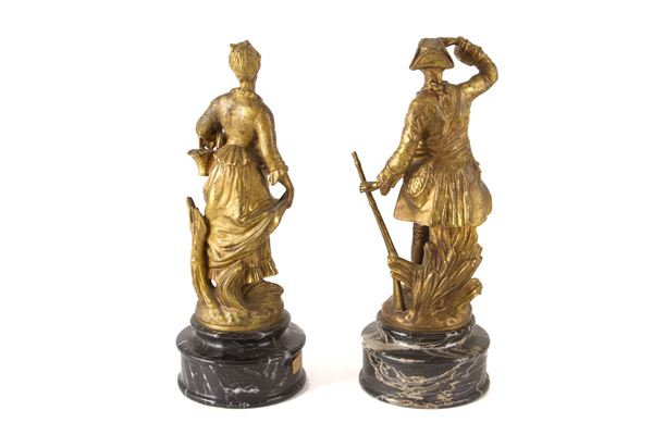 Coppia di sculture in bronzo raffiguranti "UFFICIALE E GENTILDONNA". Basi in marmo. XIX secolo.